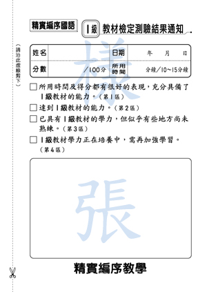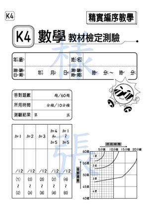 精實教材檢定卷/ ‧【數學教材檢定卷】→寬14.85公分×高21公分。 ⊙分成K3、K4、A1.A2(上)、A1.A2(下)、B、C.D(上)、 C.D(下)、E、F、G、H、I、J,共13階段(13本)。 ■ 封 面 ■ 封 底 ■ 封底裡 ■ 內 頁 TOP ‧【國語教材檢定卷】→寬18.2公分×高25.68公分。 ⊙分成K1、K2、K3、1級、2級、3級、4級、5級、6級, 共9階段(9本)。 ■ 封 面 ■ 封 底 ■ 封底裡 ■ 內 頁 TOP