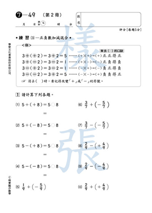 【學習目標】/ 第2冊 / TOP ‧1.學習正負數的減法。 ‧2.學習正負數的加減混合計算。