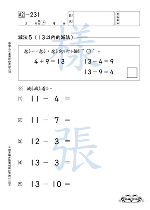 【學習內容】/ P221~240 / TOP ‧減法5 (13以內的減法)