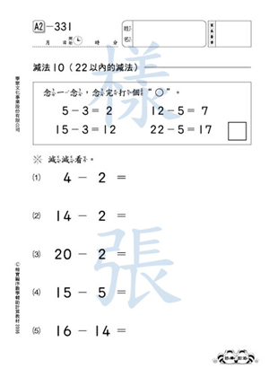 【學習內容】/ P321~340 / TOP ‧減法10 (2以內的減法)