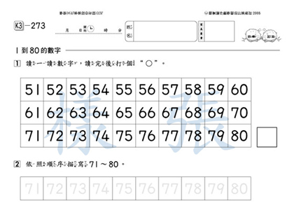 【學習內容】/ P261~280 / TOP ‧1到80的數字
