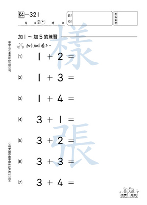 【學習內容】/ P321~340 / TOP ‧加1~加5的練習