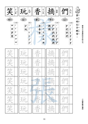【學習目標】/ 一級生字練習 2 / TOP ‧第6冊~第10冊生字練習。