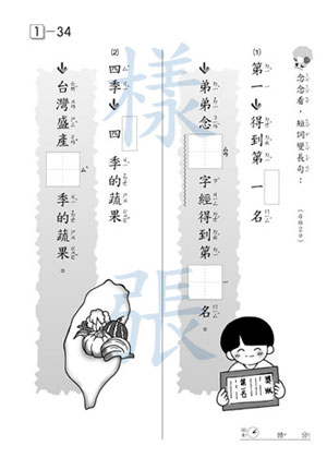 【學習目標】/ 第1冊 / TOP ‧1.透過象形文字的衍生,引導兒童進入國字的學習。 ‧2.認識基本筆畫,進而掌握書寫國字時的順序和筆畫數。 ‧3.從文章中認識句子,從句子裡復習國字及注音。 ‧4.文章□字為各單元的習寫生字。 ‧5.文章標示注音符號,有助於兒童認讀更多的國字。